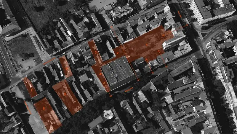 Debrecen Debrecen belvárosában, a Miklós, Piac, Arany János, Antall József utcák határolta tömbön belül több különböző helyszín. A tömb alapvetően zártsorú beépítése ellenére sokszinű helyzetek adódnak, kezdve a Piac utca felöli nagy belső rejtettt zöld "parkudvartól" a szűk átmenő telken keresztül az újonnan kialakított Antall József utca felöli nagyobb méretű telkekig. |