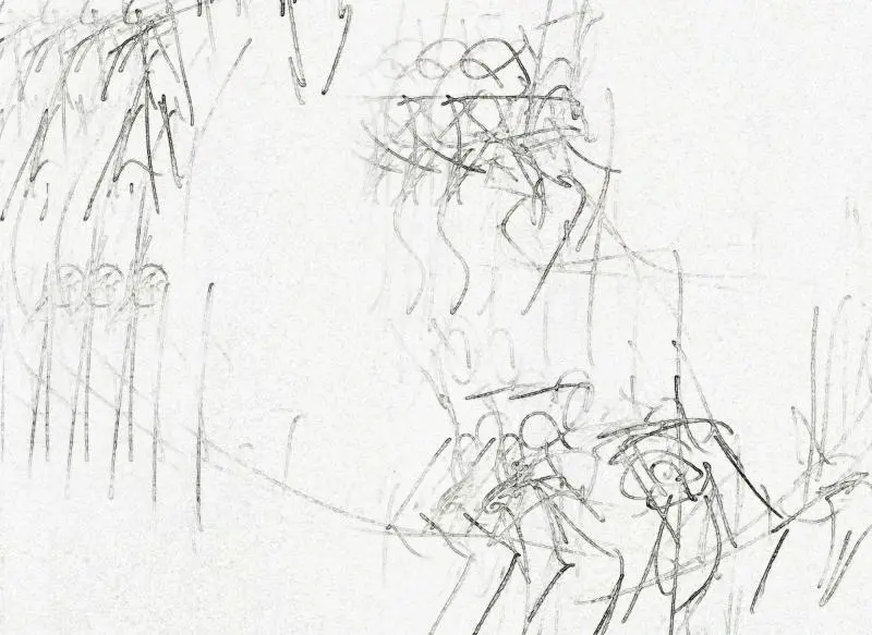 tér és mozgás A következő rajzi feladatok alapvetően az első öt órán elkészült gyors figurarajzokra és a mozgás közben megfigyelt modelleket ábrázoló vázlatokra épülnek. A krokikat megfigyelve láthatjuk, hogy a mozgás megragadása egy statikus felületen eltér a hagyományos tanulmányrajz eredményeitől. Ezért az alábbi következtetésekre jutottunk: