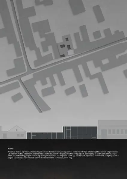 Harmadik feladat A 3. feladat alkalmával kiválasztott helyszínek Debrecen belvárosi lakóövezetében található foghíj telkek, melyeket a szomszédos két lakóingatlan tűzfalai vesznek körül. A tűzfalak szorításában kialakuló telek izgalmas építészeti feladatot jelentett mind a tűzfalakkal történő kommunikáció, mind a szabadon maradó telekrészek kialakítása miatt. Két tervezési helyszín lett kiosztva a hallgatók között: az egyik egy szűkebb, többszintes beépítést lehetővé tévő telek, a másik egy szélesebb, alacsonyabb beépítést tesz lehetővé. A feladat ezen a turisztikai szempontból is kiemelten fontos területeken, egy hivogató, a közterületek felé megfelelő kapcsolatokkal rendelkező középület létrehozása volt. A tervezés folyamán a funkcionális szempontok érvényesítése mellett kiemelt figyelmet kellett fordítani a telekhasználatra. A beépítés során törekedni kellett a meglévő utcakép és a tervezett utcai homlokzat harmonikus kapcsolatára. A környék zártsorú beépítésének sűrűsége lehetővé tette, hogy többszintes kialakításban is gondolkodhassunk. |