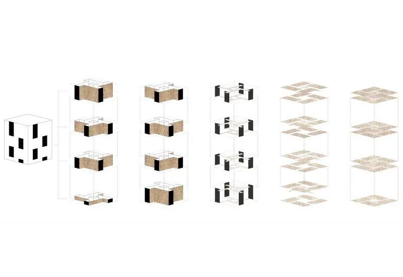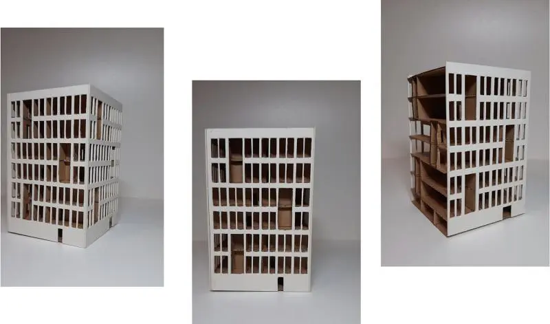 Második feladat A 2. feladat során egy meglévő épület külső tömegéről készült képből kiindulva, mint megkötés, épületet terveztek a hallgatók újra fiktív helyszínre. Ezúttal a tömegen belüli tér-struktúra meghatározása és adaptálása volt a tervezési feladat, közösségi-funkciójú épülethez. A kontextust a tervezett épület tulajdonságai alapján határoztuk meg. |