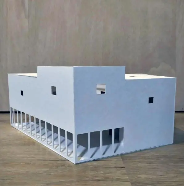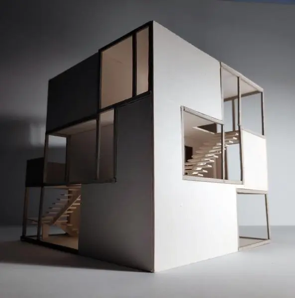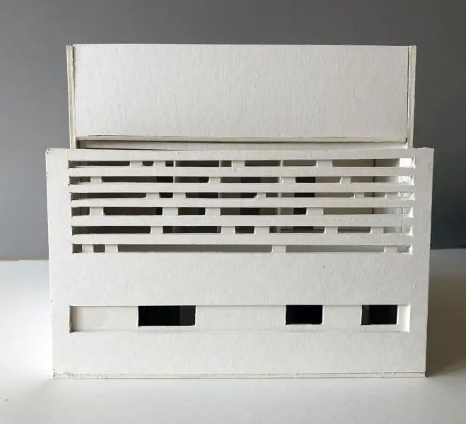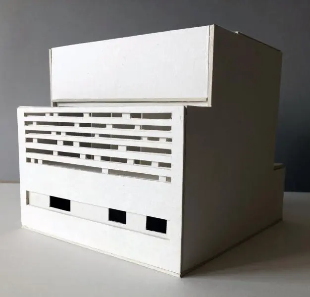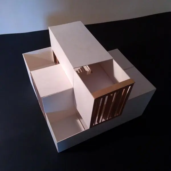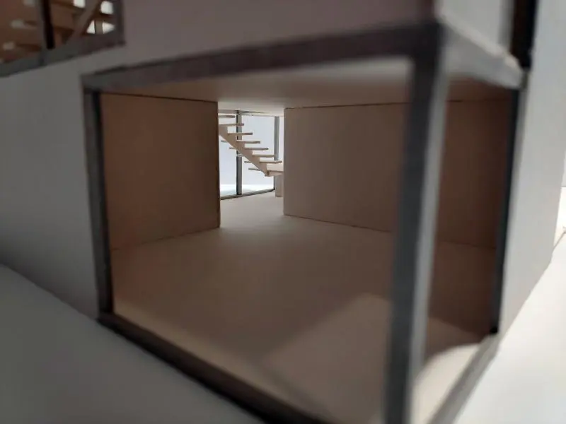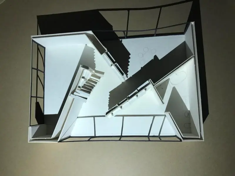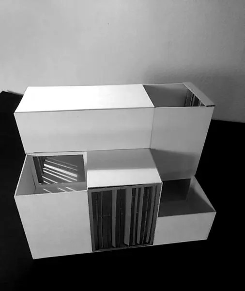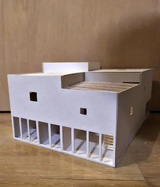 A félév második feladata egy zh feladat volt, az első feladat folytatása inverz módon. A választott épület formai koncepcióját, képletét kellett kibontani és értelmezni. Additív vagy reduktív? Milyen alapelemekből épül fel? A külső kubatúrából kellett visszafejteniük a belső téri szituációkat és koncepicót formálni annak funkcionális felépítéséhez.