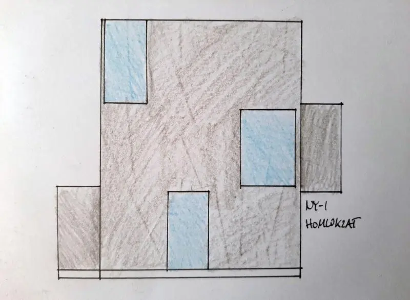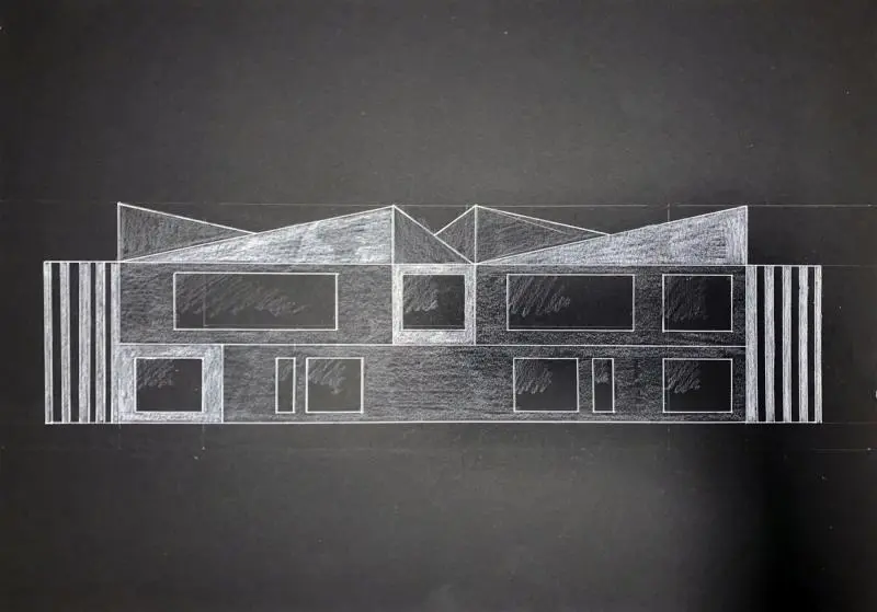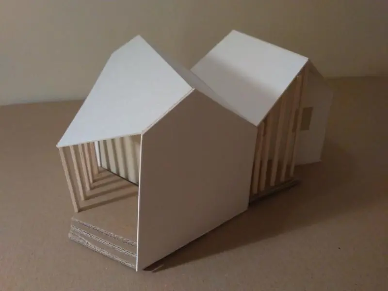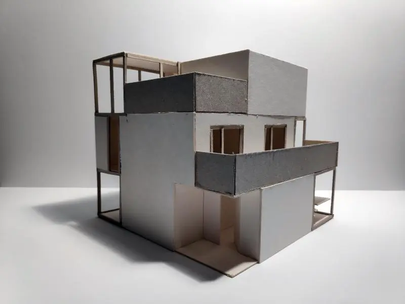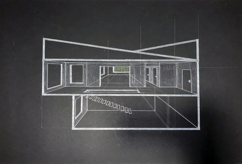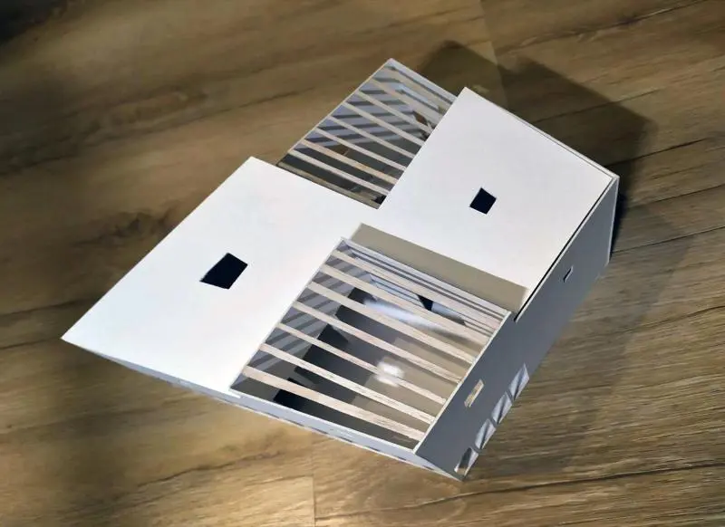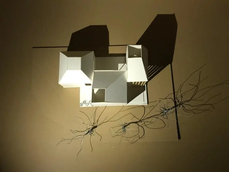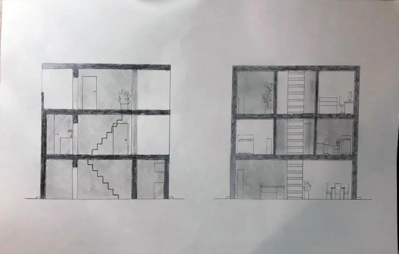 A félév második feladata egy zh feladat volt, az első feladat folytatása inverz módon. A választott épület formai koncepcióját, képletét kellett kibontani és értelmezni. Additív vagy reduktív? Milyen alapelemekből épül fel? A külső kubatúrából kellett visszafejteniük a belső téri szituációkat és koncepicót formálni annak funkcionális felépítéséhez.