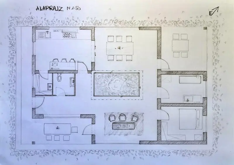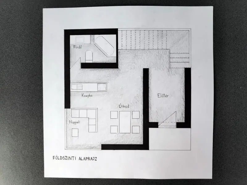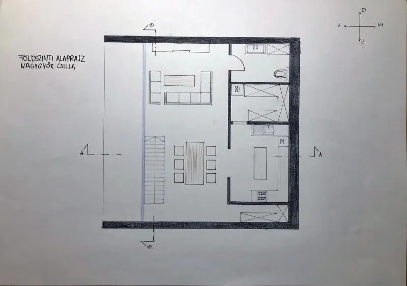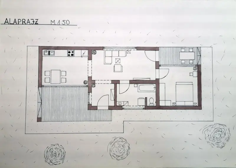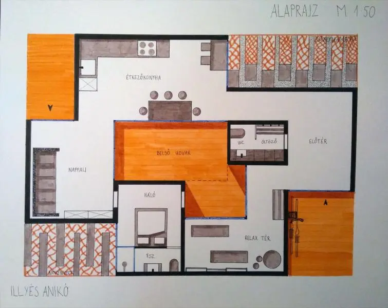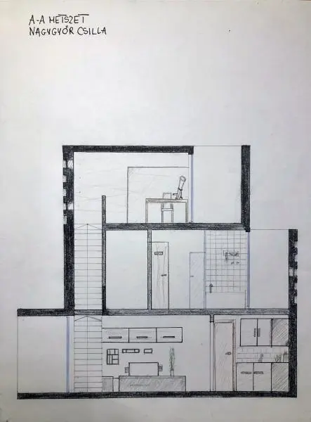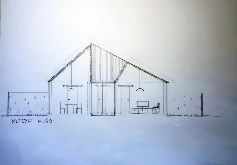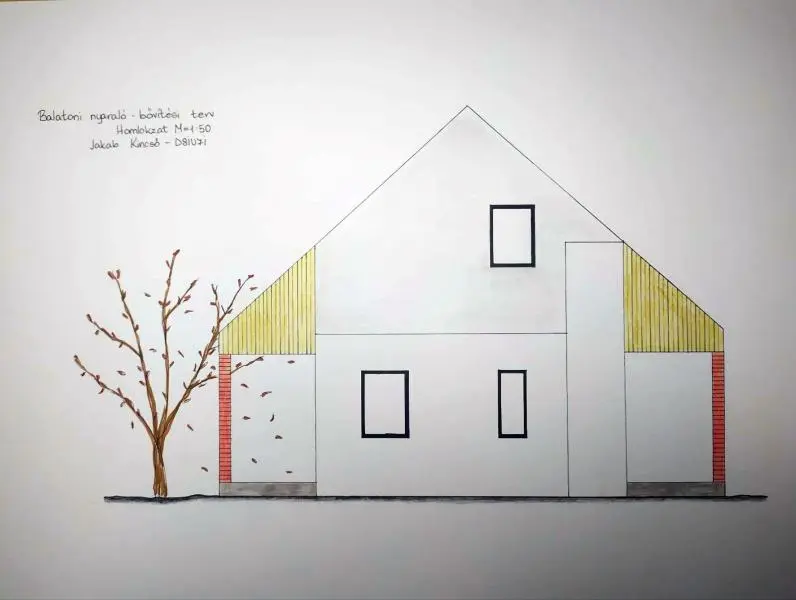 A feladat a meglévő épület bővítése konyha-nappali-étkező funkcióval. A bővítés módját és koncepcióját, mindenki egyéni döntése határozza meg.