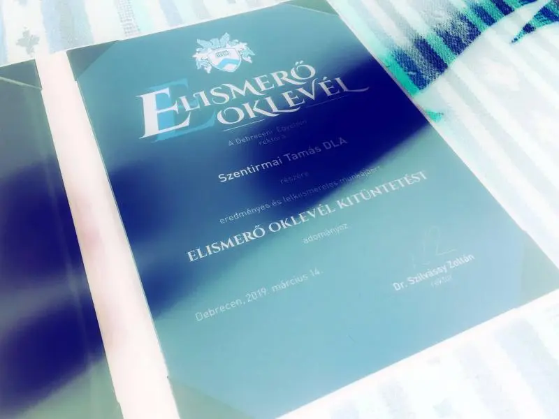 Debreceni Egyetem rektori Elismerő Oklevél Kitüntetés |