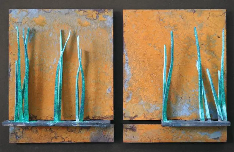 a XXIII Országos Érembiennálén a Magyar Éremművészetért Alapítvány díját kapta az Itt és most; diptichon / Pilinszky 100. művéért 2021, bronz, acél, 23,5x15x1,5 cm részletek: